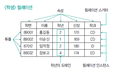 - 예를 들어, 학생 정보가 학번, 이름, 학년이 있을 때, 3개의 정보가 모두 같은 학생이 오직 한 명이면 이를 개체라고 합니다.