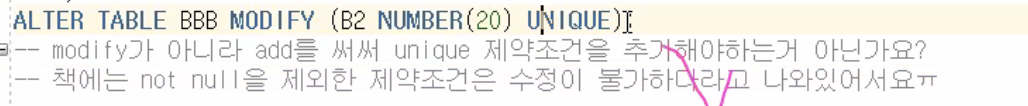 제약조건이 아무것도 없는 순박한 아이는 modify로 제약 조건 줄 수 있다. (add처럼)