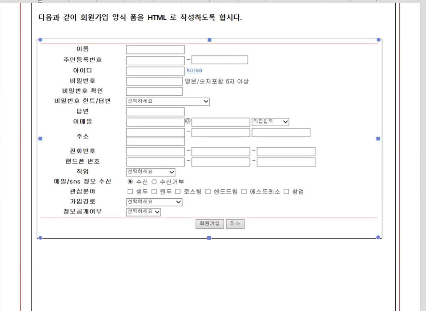 회원 가입 화면 'HTML' 카테고리의 다른 글