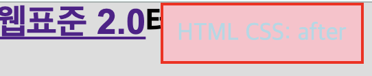 @charset "UTF-8"; html, body, h1, h2, h3, h4, h5, h6, section, header, aside, footer, nav, article, figure, fieldset, p, ul, ol, li, dl, dt, dd, form { margin: 0;padding: 0; } body { font: .8em Arial, sans-serif; } html { background: #ddd } .mission_a { text-decoration: none; } /* .mission_a a:hover::before{ content: 'HTML CSS: before'; font: .9em Helvetica sans-serif; color: lightblue; } */ .mission_a h1 a:hover::after{ content: 'HTML CSS: after'; font: .7em Helvetica sans-serif; color: lightblue; position:absolute; display:block; margin-left:120px; top:0; padding:10px; background:pink; border: 2px solid red; }<HTML>