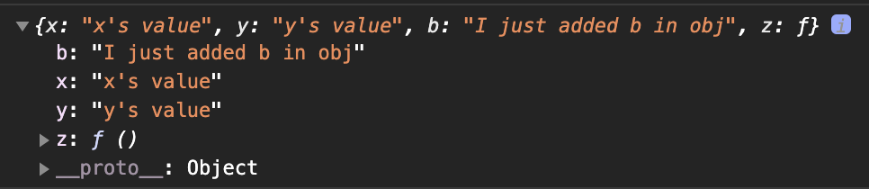 //추가 obj.b = "I just added b in obj"; console.log(obj); //object 형태 추가 obj.add = {newAttr: "새로운 object형태 추가"};삭제